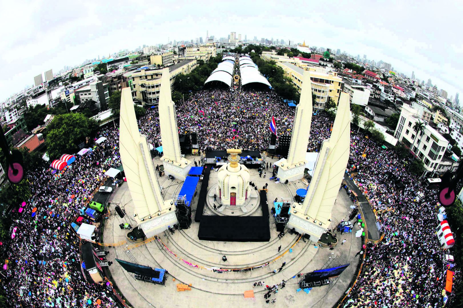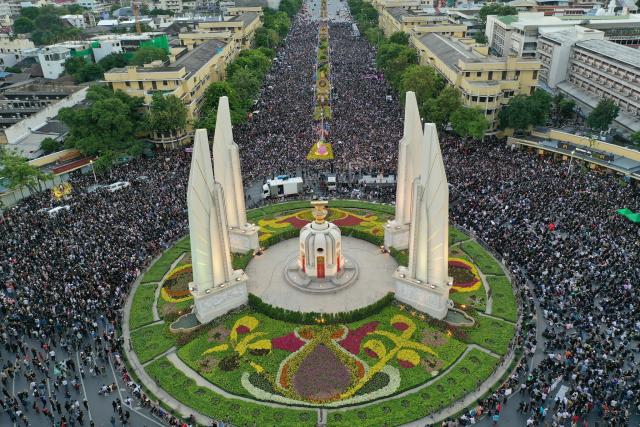 Bangkok, Thailand (CNN)It was an act unthinkable in Thailand mere months ago -- an estimated 10,000 anti-government protesters packing Bangkok's Democracy Monument on Sunday, with some calling for reform of the country's monarchy.