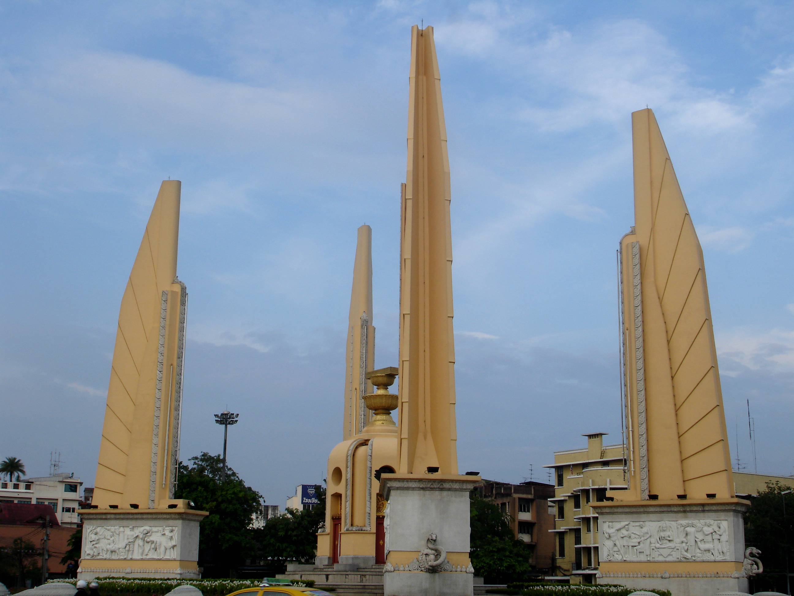 protests_059The Democracy Monument in Bangkok, Thailand The Democracy Monument (Thai: อนุสาวรีย์ประชาธิปไตย, ) is a public monument in the centre of Bangkok, capital of Thailand. It occupies a traffic circle on the wide east-west Ratchadamnoen Avenue, at the