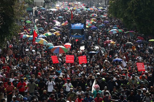 The protest was the biggest anti-government rally since the military seized power six years ago, and came after a month of almost daily demonstrations started by students across the country that have since attracted a large cross-section of society.