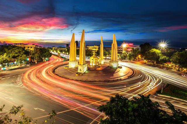 Moment of Democracy monument at Dusk in Bangkok, Thailand.