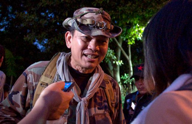 Renegade Thai major-general Khattiya Sawasdipol, only moments before being shot while being interviewed by Thai and foreign reporters in Bangkok on May 13, 2010. Khattiya, better known as Seh Daeng, a rogue soldier and de facto military chief of Thailand's red shirt protest movement later died from the wound. (REUTERS/Cyrille Andres)