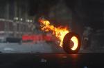protests_011A burning tire rolls toward the line of Thai soldiers moving to disperse Red Shirt protesters on Friday, May 14, 2010 in Bangkok, Thailand. (AP Photo/Wason Wanichakorn)