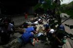protests_013Red Shirt anti-government protesters crouch on the ground after several gunshots rang out and stuck two men, as hundreds of protesters gathered under the highway bridge on Rama 4, during clashes between demonstrators and security forces in Bangkok on May