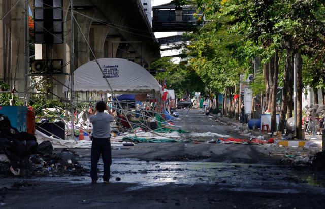 protests_045A person takes a photograph of deserted Lumpini Park following a crackdown on anti-government protesters, in downtown Bangkok, Thailand, Wednesday, May 19, 2010. (AP Photo/ Manish Swarup)