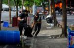 Red Shirt supporters rescue a fellow protester who was shot after army soldiers penetrated a barricade where thousands of protesters were encamped in Bangkok May 19, 2010. At least two other protesters lie injured on the sidewalk in the background. (REUTERS/Adrees Latif)