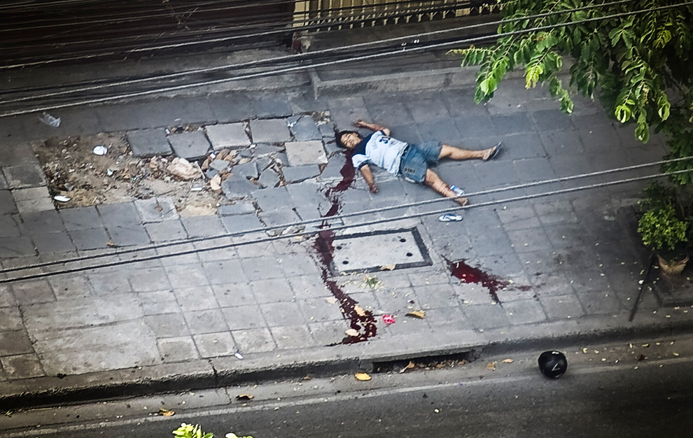 protests_021A Thai man believed to be a Red Shirt demonstrator lies dead in the street after being shot by an unidentified sniper Saturday, May 15, 2010, in Bangkok, Thailand. (AP Photo)