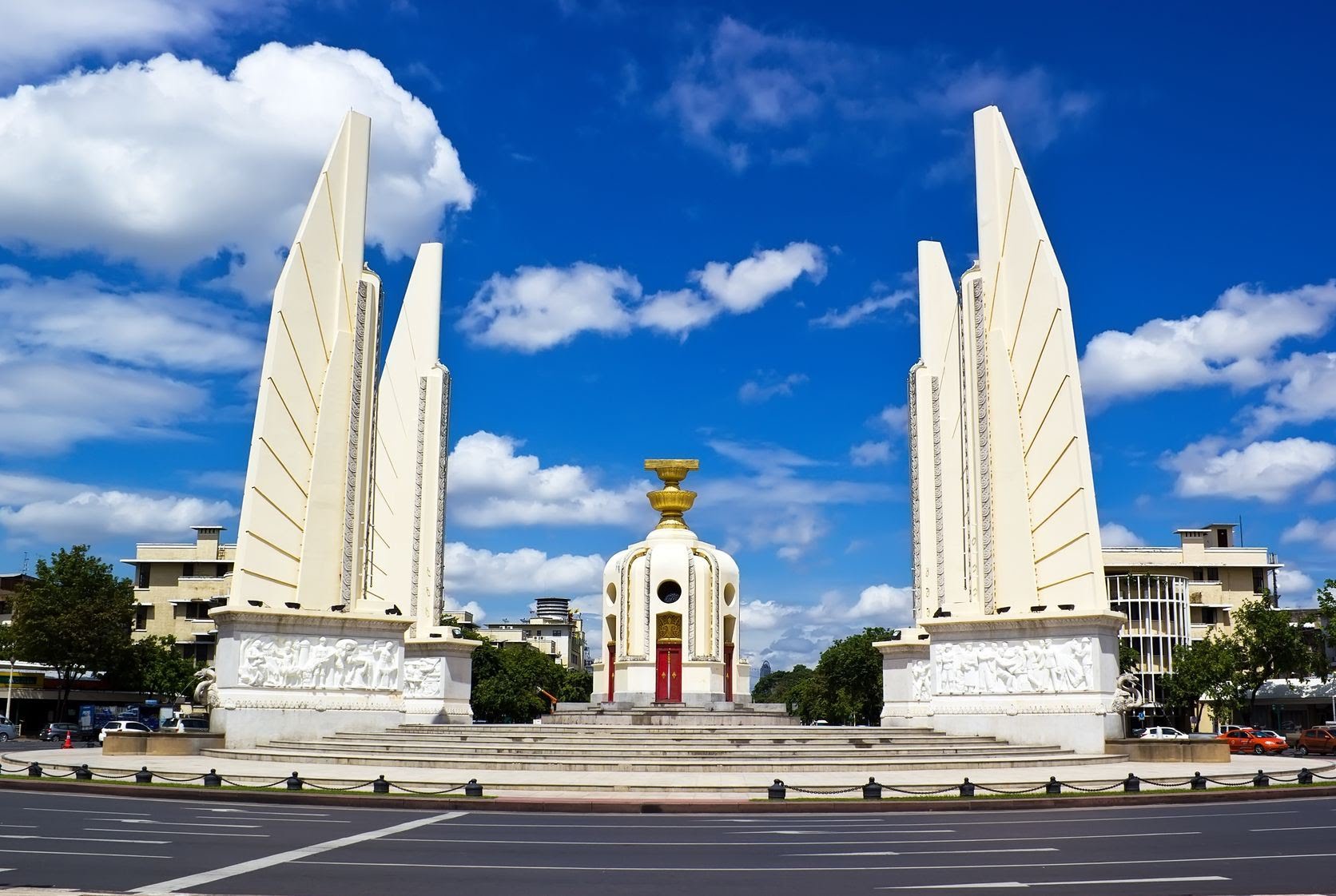 protests_058The Democracy Monument at Bangkok, Thailand The Democracy Monument (Thai: อนุสาวรีย์ประชาธิปไตย, ) is a public monument in the centre of Bangkok, capital of Thailand. It occupies a traffic circle on the wide east-west Ratchadamnoen Avenue, at the