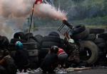 An intoxicated Red Shirt supporter lies against a barricade made out of tires during clashes at Rama IV Street in Bangkok May 16, 2010. (REUTERS/Jerry Lampen)