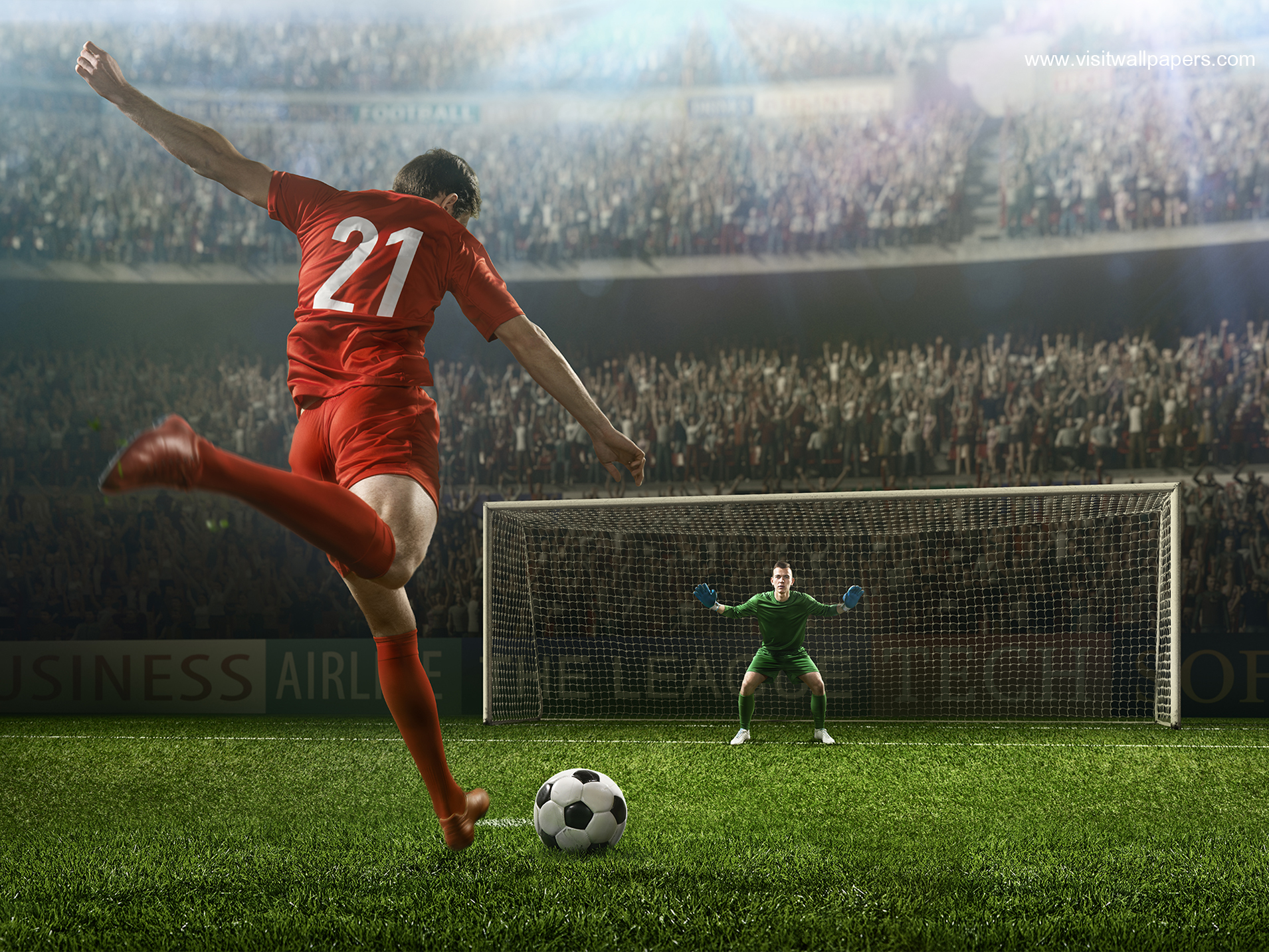 soccer_80Soccer player kicks the ball in the stadium. Goalkeeper tries to catch the ball