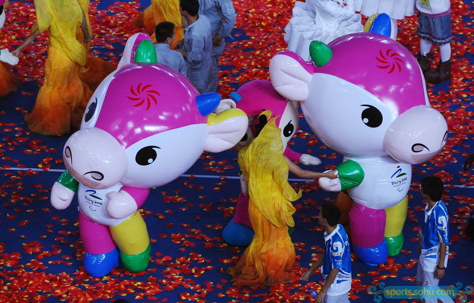 Fu Niu Lele, the mascot of the 2008 Summer Paralympics, performed during the closing ceremo
