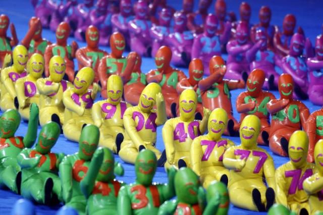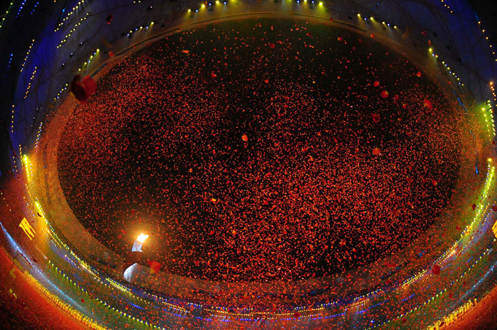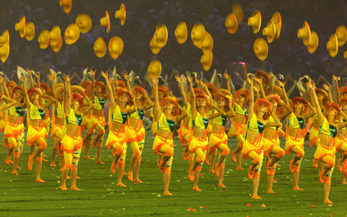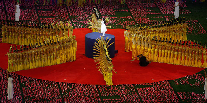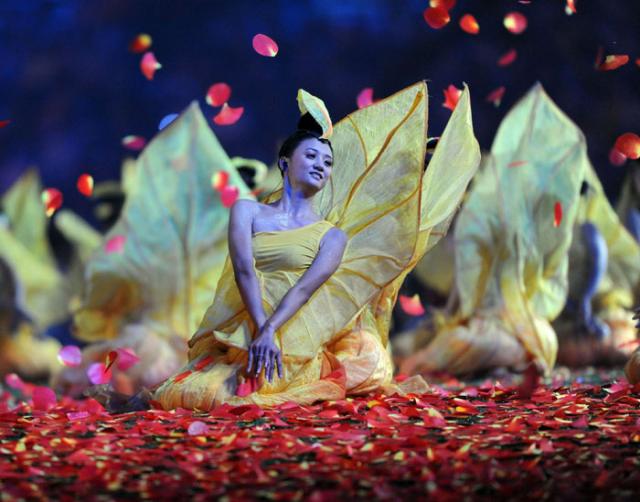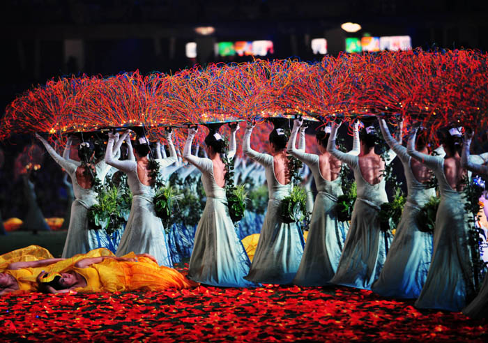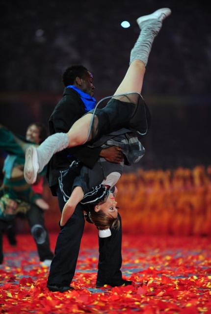 Dancers perform in the National Stadium, better known as the Bird's Nest, at the closing ceremony of the 2008 Beijing Paralympic Games in Beijing on September 17, 2008. China will bring down the curtain on a spectacular summer of sport during which it dazzled on and off the track, with the closing ceremony of the Paralympics.