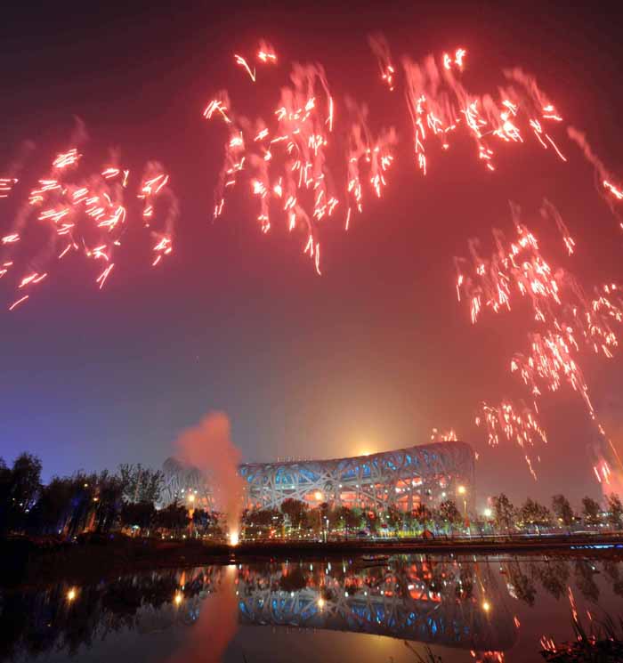 Fireworks explode during the closing ceremony of the 2008 Beijing Paralympic Games at the National Stadium on September 17, 2008 in Beijing, China.