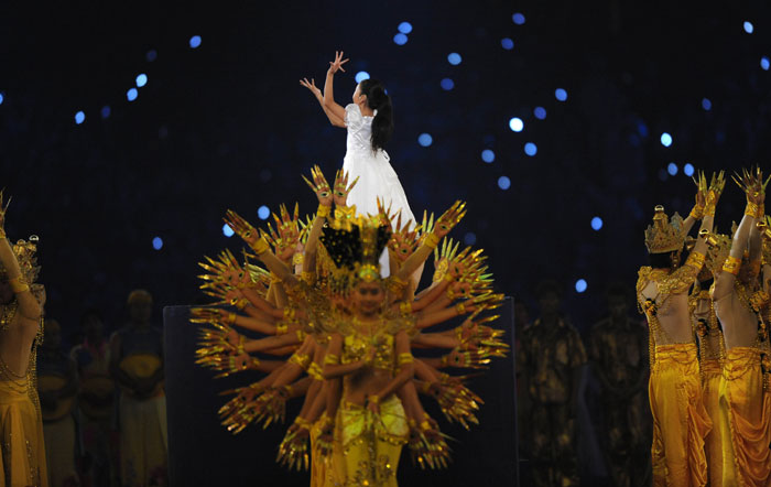 Chinese entertainers perform during the closing ceremony of the 2008 Beijing Paralympic Games at the National Stadium on September 17, 2008 in Bei