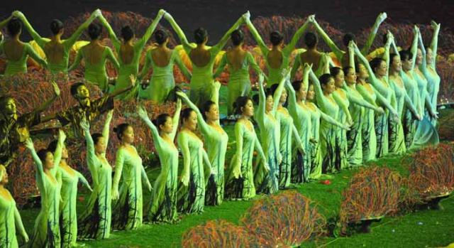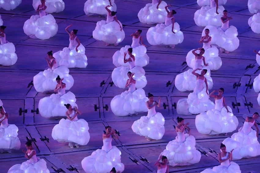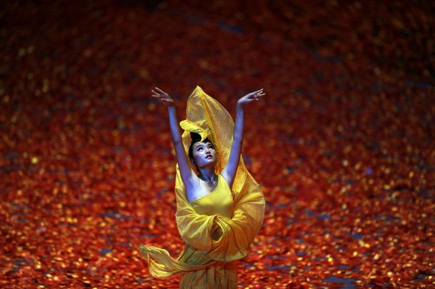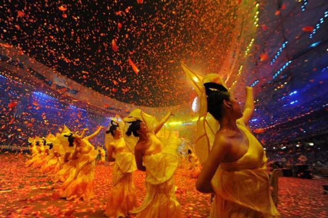 Dancers perform in the National Stadium, better known as the Bird's Nest, at the closing ceremony of the 2008 Beijing Paralympic Games in Beijing on September 17, 2008. China will bring down the curtain on a spectacular summer of sport during which it dazzled on and off the track, with the closing ceremony of the Paralympics.