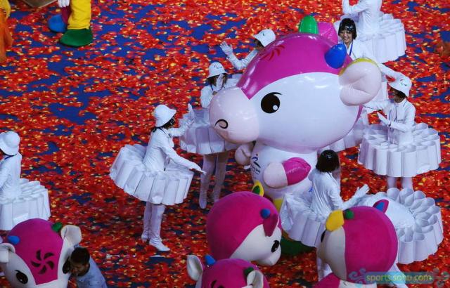 Fu Niu Lele, the mascot of the 2008 Summer Paralympics, performed during the closing ceremo