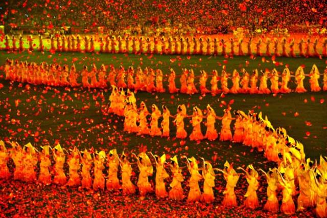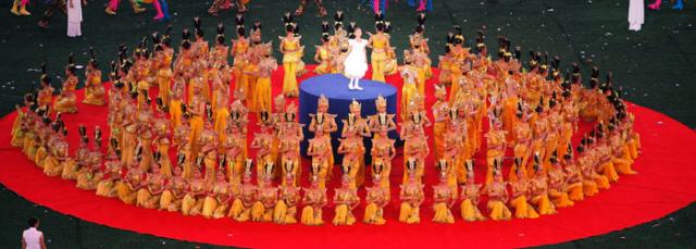 Dancers perform in the National Stadium, better known as the Bird's Nest, at the closing ceremony of the 2008 Beijing Paralympic Games in Beijing on September 17, 2008. China will bring down the curtain on a spectacular summer of sport during which it dazzled on and off the track, with the closing ceremony of the Paralympics.