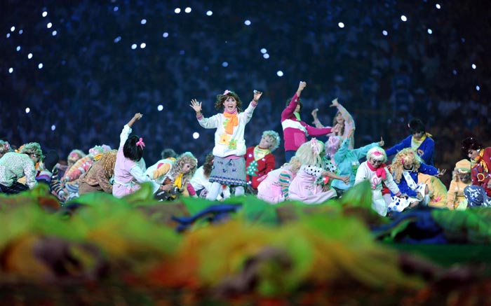 Artists perform at the Closing Ceremony of Beijing 2008 Paralympic Games in the National Stadium, also known as the Bird's Nest, Beijing, on September 17, 2008.