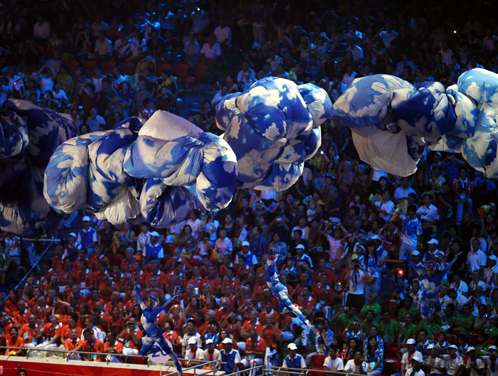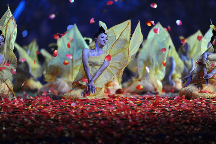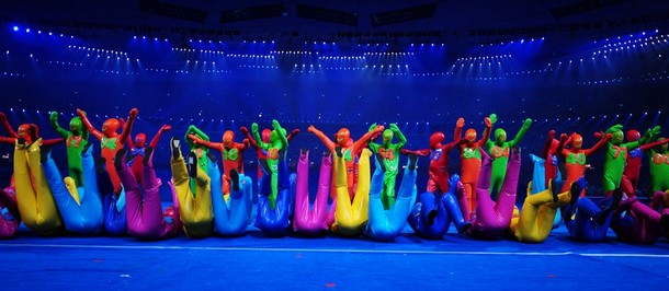 Dancers perform in the National Stadium, better known as the Bird's Nest, at the closing ceremony of the 2008 Beijing Paralympic Games in Beijing on September 17, 2008. China will bring down the curtain on a spectacular summer of sport during which it dazzled on and off the track, with the closing ceremony of the Paralympics.