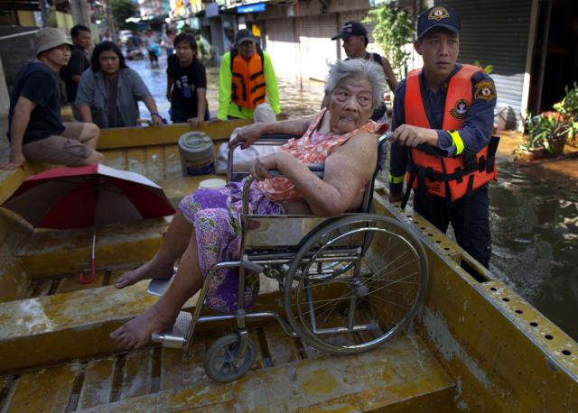thai_flood_54_013An elderly woman is evacuated along flooded streets near the Chao Phraya river on October 25, 2011 in Bangkok. (Paula Bronstein/Getty Images)