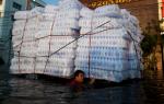 thai_flood_54_016A man with bottles of water wades down a flooded street on October 24, 2011 in Bangbuathong, Thailand. (Daniel Berehulak/Getty Images)