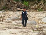 thai_flood_54_027A Thai rescue worker sits next to a crocodile caught in a flooded area in Ayutthaya province October 15, 2011. (Sukree Sukplang/Reuters)
