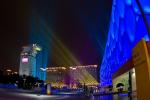 beijing2008_633"ลูกบาศก์น้ำ" ศูนย์กีฬาทางน้ำแห่งชาติ กรุงปักกิ่ง และโรงแรมตึกผานกู่พลาซ่า จุดไฟอย่างสวยงามในตอนกลางคืน