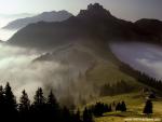 mountains_364Mount Fuji, Honshu, Japan. Japan's tallest mountain (12,388 feet high) towers over the nearby countryside, which is often enveloped in a thick layer of fog. Fuji is an active volcano, last erupting in 1707.