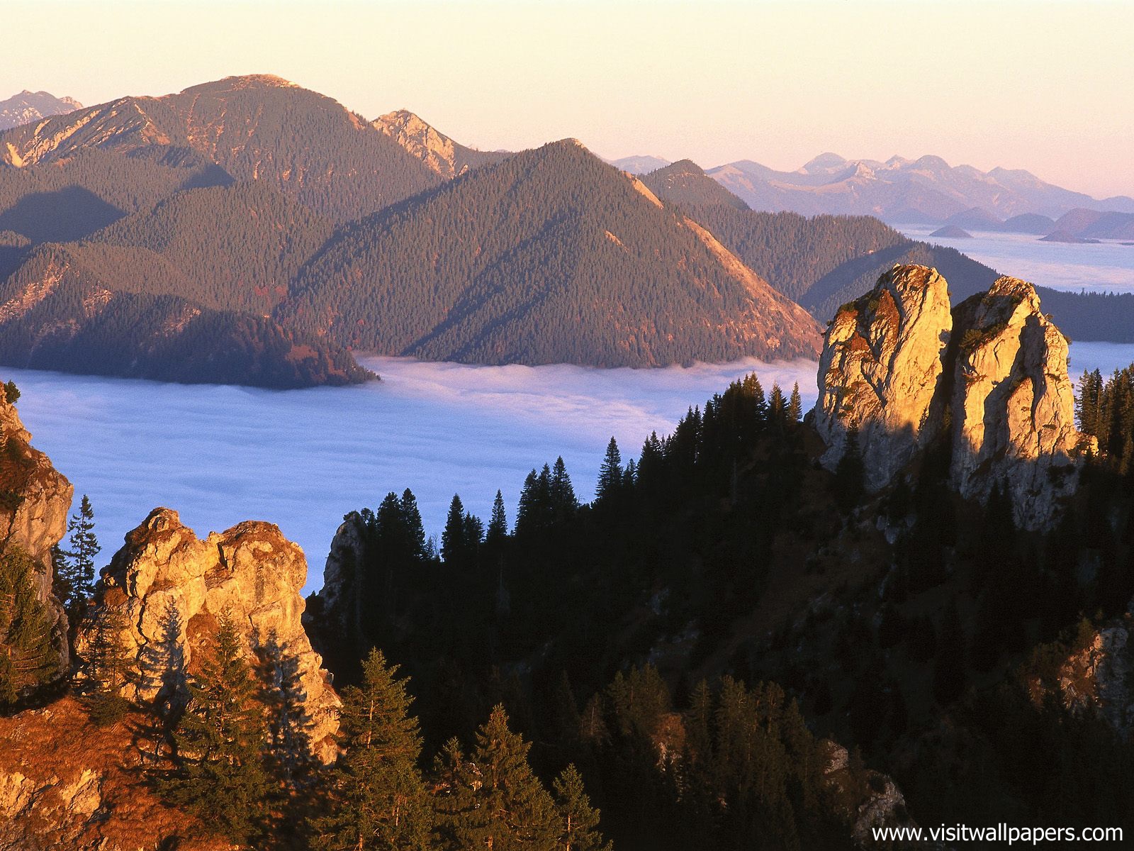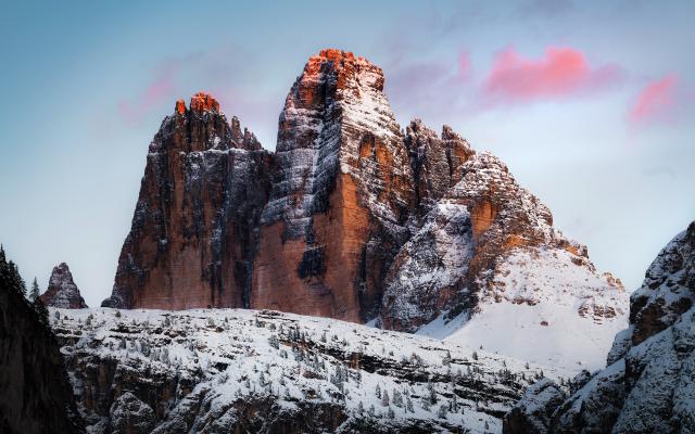 mountains_368Three Peaks of Lavaredo at sunset, Italy The Tre Cime di Lavaredo ("Three Peaks of Lavaredo"), also called the Drei Zinnen, are three distinctive battlement-like peaks, in the Sexten Dolomites of northeastern Italy. They are probab