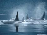 ocean-life-796Beautiful scene with killer whales (Orcinus orca) breathing on the ocean surface at sunrise with colorful clouds reflected in the water