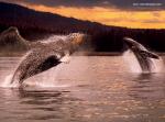 ocean-life-797Killer whale, known as Orca, jumping out of sunset ocean water with splashes, Norwegian fjord in the background