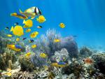 ocean-life-778Underwater coral reef scenery with colorful school of fish.